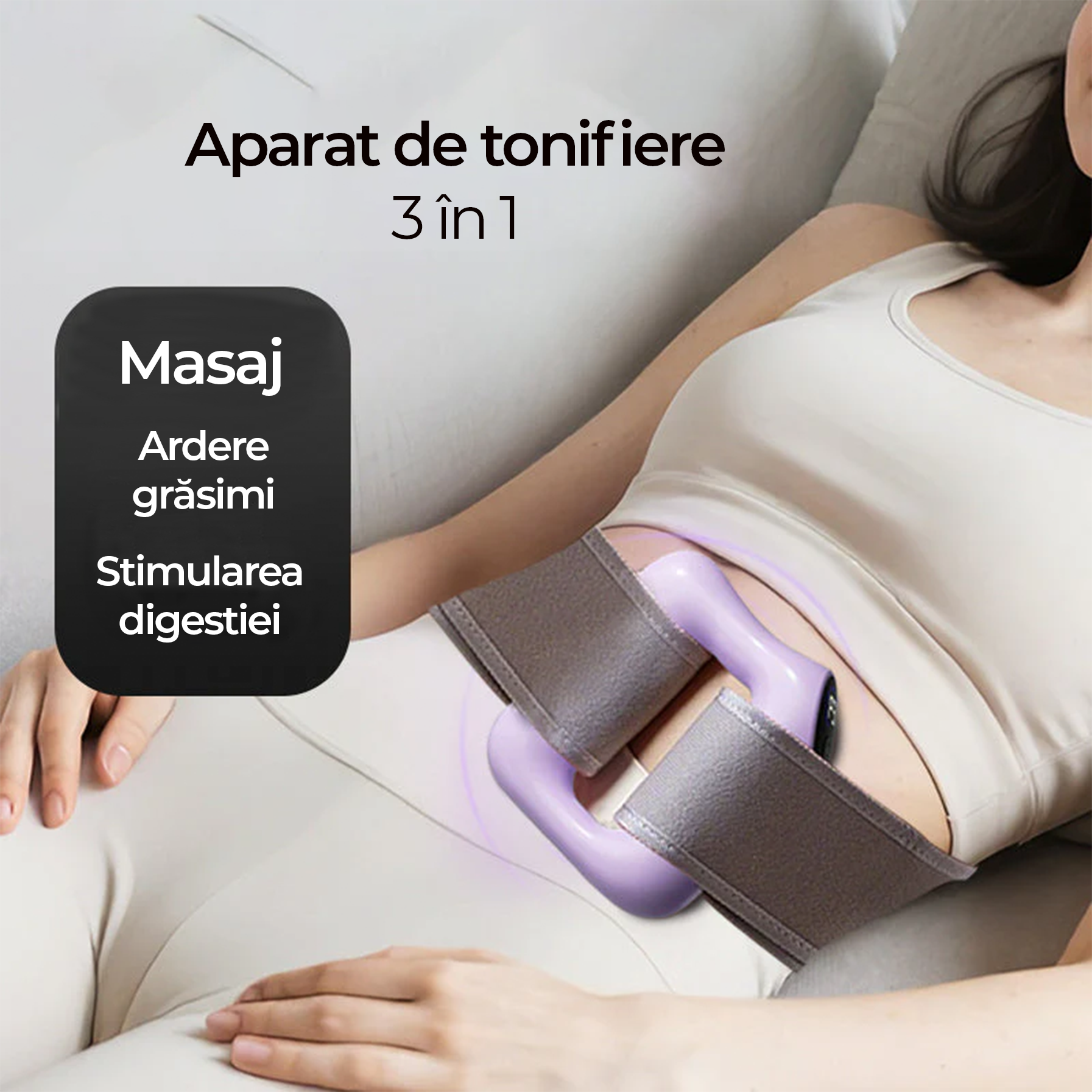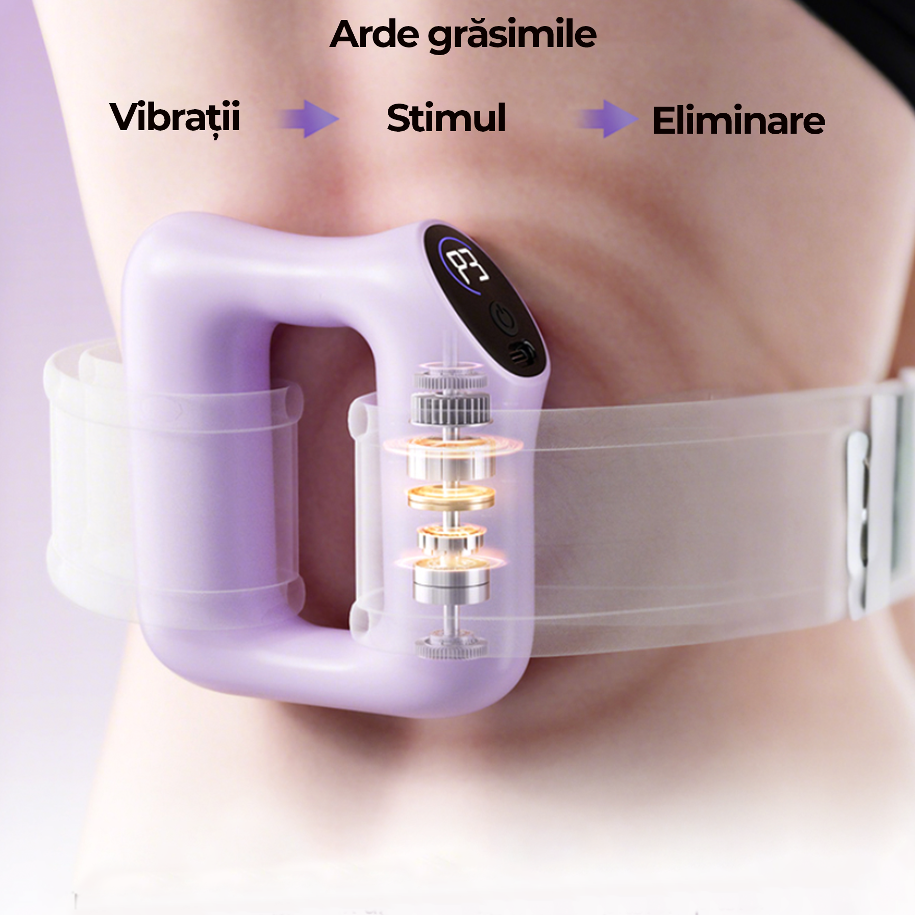 Datorită designului ergonomic tip inel, dispozitivul se poate fixa ușor pe diferite zone ale corpului, precum talie, abdomen, coapse, brațe sau spate. Forma sa permite o acoperire uniformă și un masaj constant, fără a necesita efort suplimentar din partea utilizatorului.
